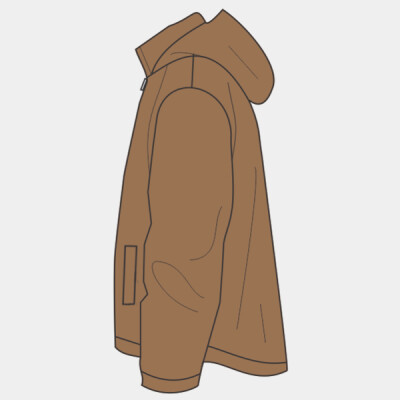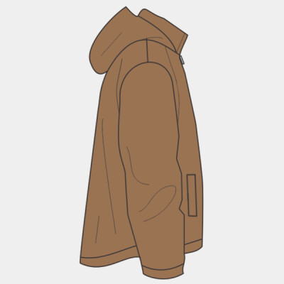 - Attached three-piece hood with drawstring