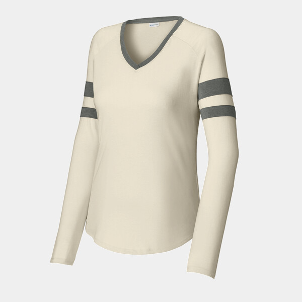 Sport Tek Ladies Halftime Stripe Long Sleeve V Neck Tee LST6043